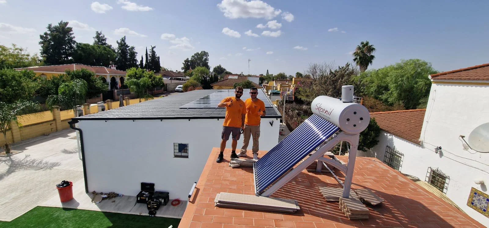 A solar system, that includes panels, off grid inverters, batteries ( and usually we recommend, a back up generator). Allowing the building to be completely self suffiencent without any help from the grid. So there won’t be any electricity bills. The only costs are occasional fuel for the generator for periods when there might be less sunlight effecting the amount of charge in the batteries and maintenance service contracts. Invictasol can provide you with everything because we are the bloody best!